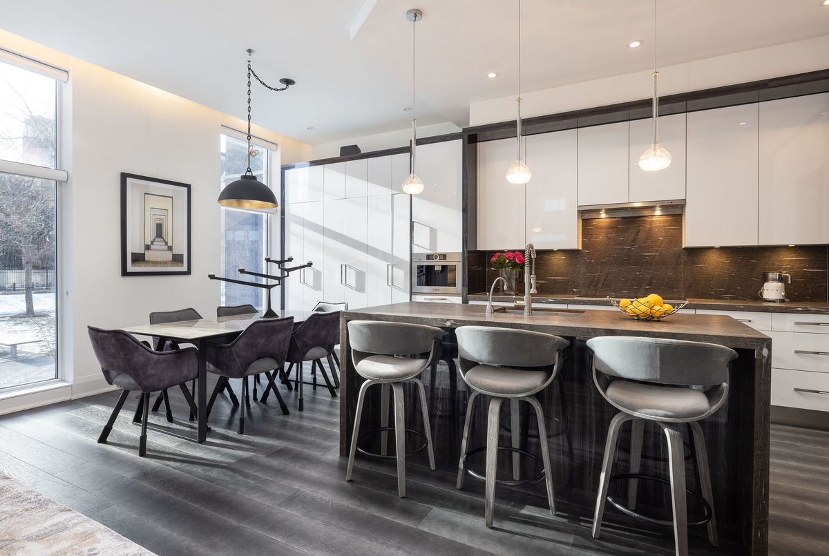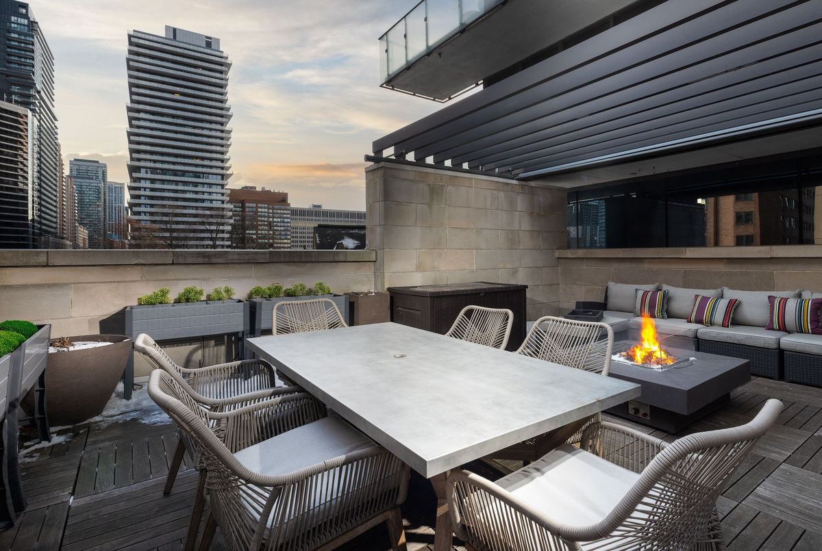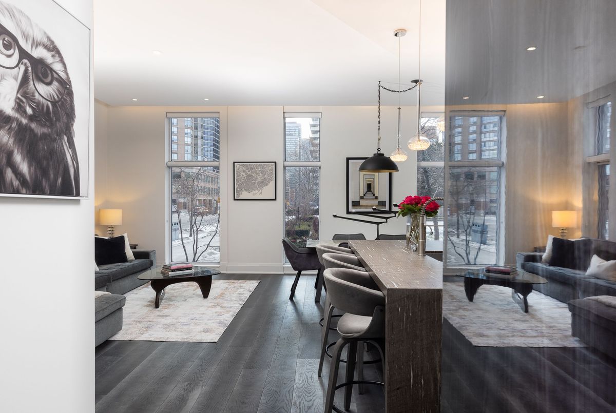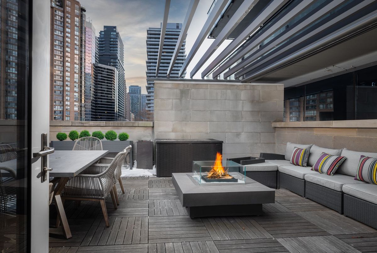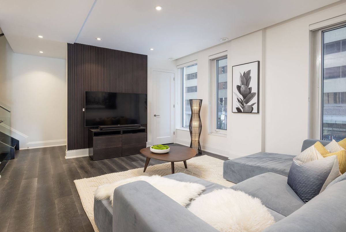 Extraordinary and Rarely Available - (one of only six) - Stunning, 3-storey Yorkville Townhouse, with private elevator to access all floors. Sun-filled corner residence features floor-to-ceiling windows, 10 ft. ceilings, nearly 3000 sq. ft. of luxury living space, sculptural glass stairwell connecting all floors. Exquisite open-concept Irpinia kitchen with Sub Zero & Wolf appliances flows seamlessly into living and dining areas. 3 + 1 Bedrooms, 4 opulent Bathrooms. Lavish Primary Bedroom on top floor has spa-inspired 5-piece ensuite, walk-in and customized closets. Spacious laundry room on 2nd floor. Rooftop terrace offers spectacular south-facing city view, BBQ and fire table, privacy- and weather-protecting canopy. Rare 3-car private car garage; lower-level convenient mudroom; and abundant storage. Building amenities include 24-hour concierge, exercise room, party room, sauna, and visitor parking.Fabulous Bay-Bloor location invites effortless access to Yorkville's uniquely urban attractions: entertainment venues, exclusive shopping, fabulous restaurants and galleries.