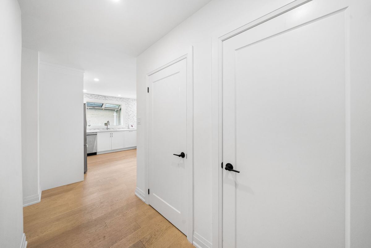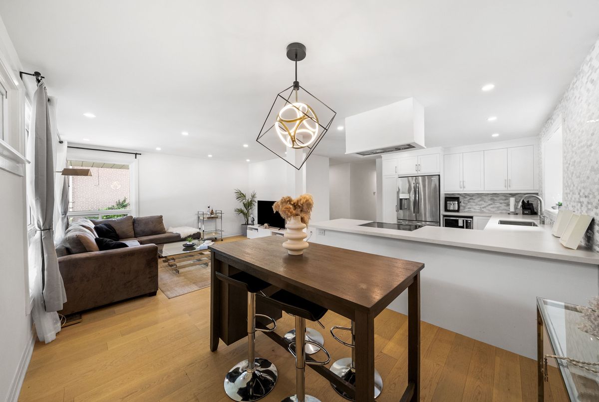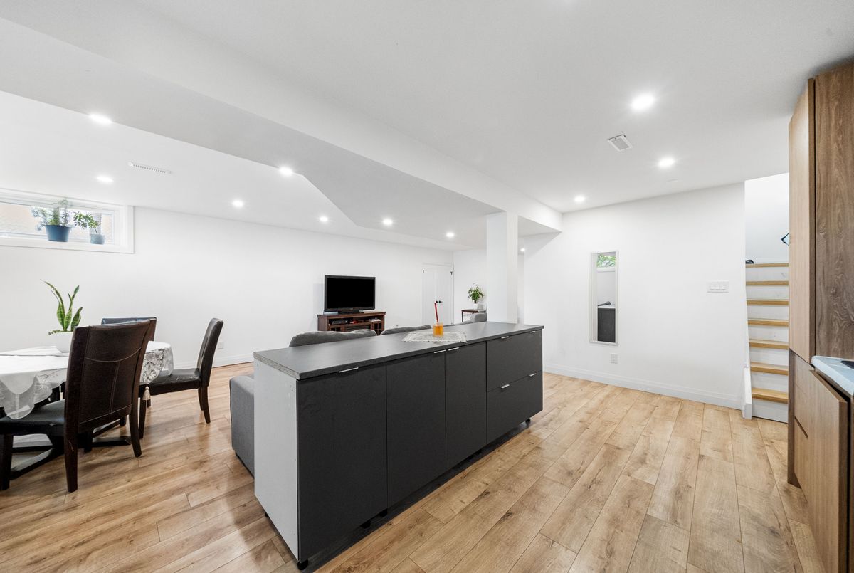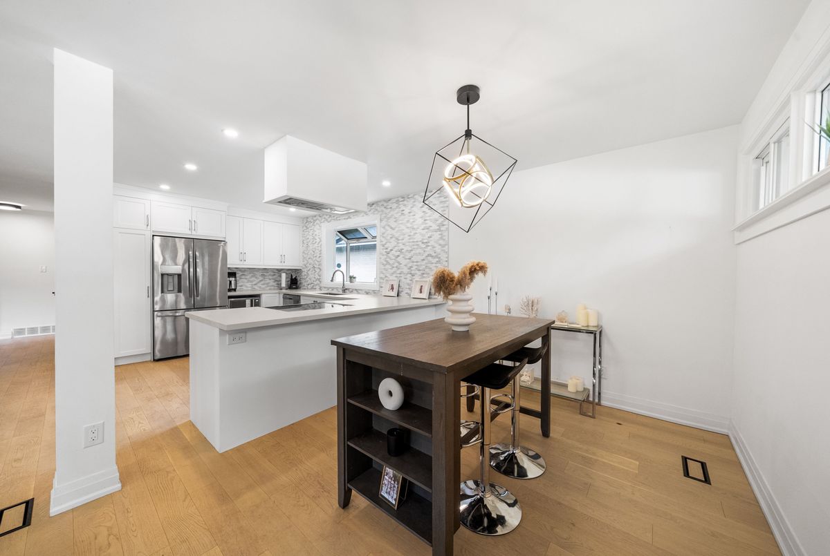 This tastefully updated bungalow on a quiet crescent, located in a highly sought-after neighbourhood, combines contemporary design with everyday practicality. The main floor features three generously sized bedrooms, each bathed in natural light and offering a quiet retreat. The open-concept living area is perfect for both hosting guests and family time, with a kitchen thats sure to impress. It comes equipped with new stainless steel appliances, sleek quartz countertops, custom cabinetry, and a beautiful backsplash. The fully finished basement apartment, accessible through a separate entrance, offers great potential, including a cozy living space, full kitchen, one bedroom, and ample room to add another bedroom. Backing onto a picturesque green space, this home offers privacy and tranquility, while being just minutes from schools, shopping, parks, and public transportation. A true gem that blends comfort and convenience, this one wont last long!